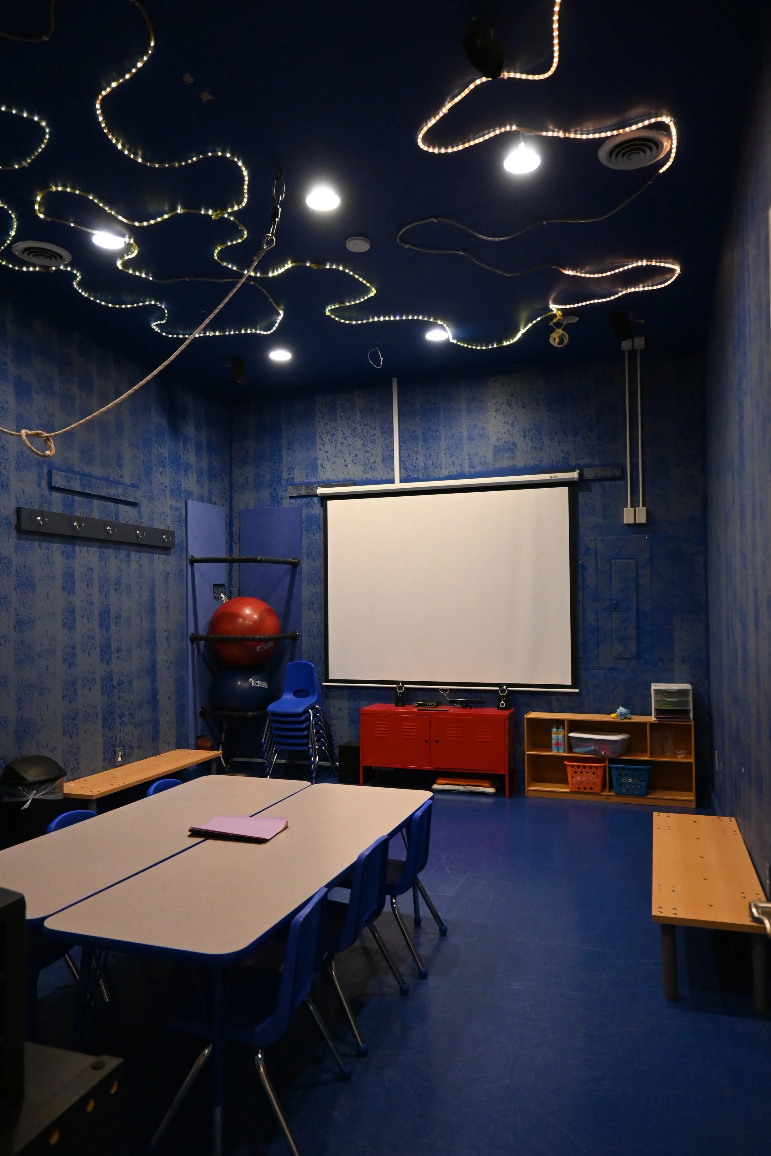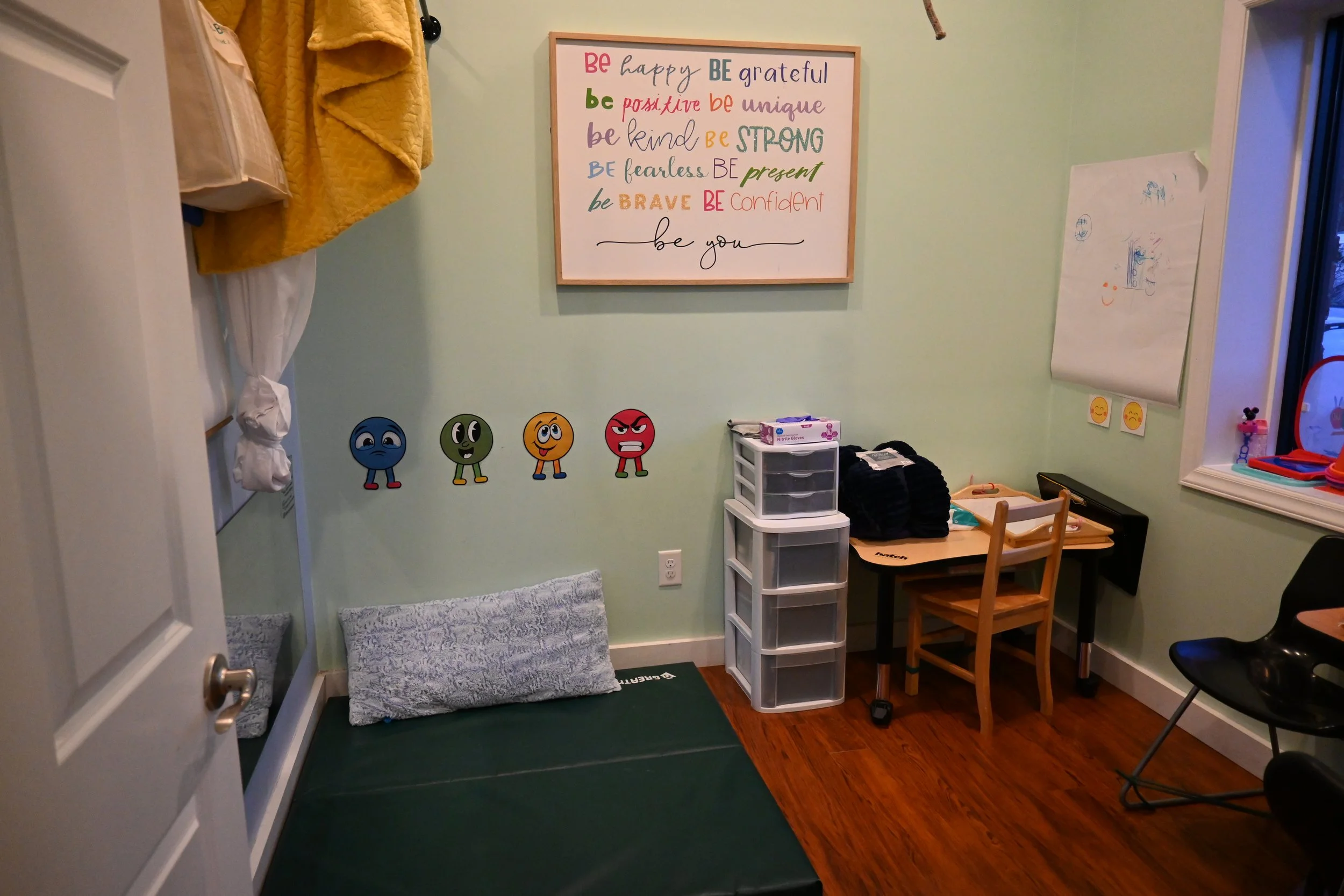 A peaceful, calming space designed for children who need to regulate their emotions or take a sensory break.
