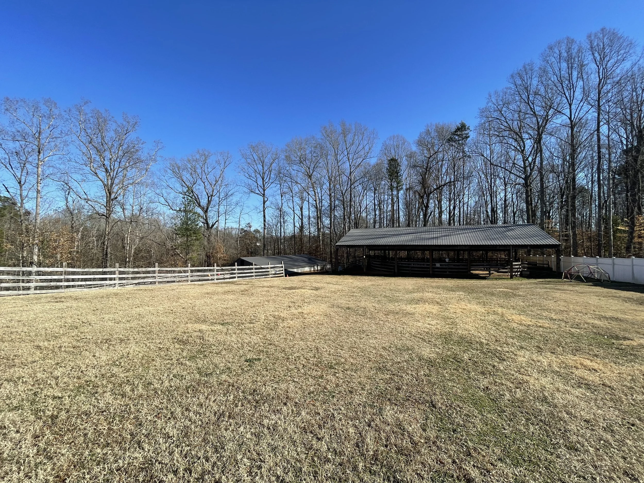 Barn and round pen with animals: Featuring 15 pigs, 2 goats, a mini horse, bunnies, and a rooster.