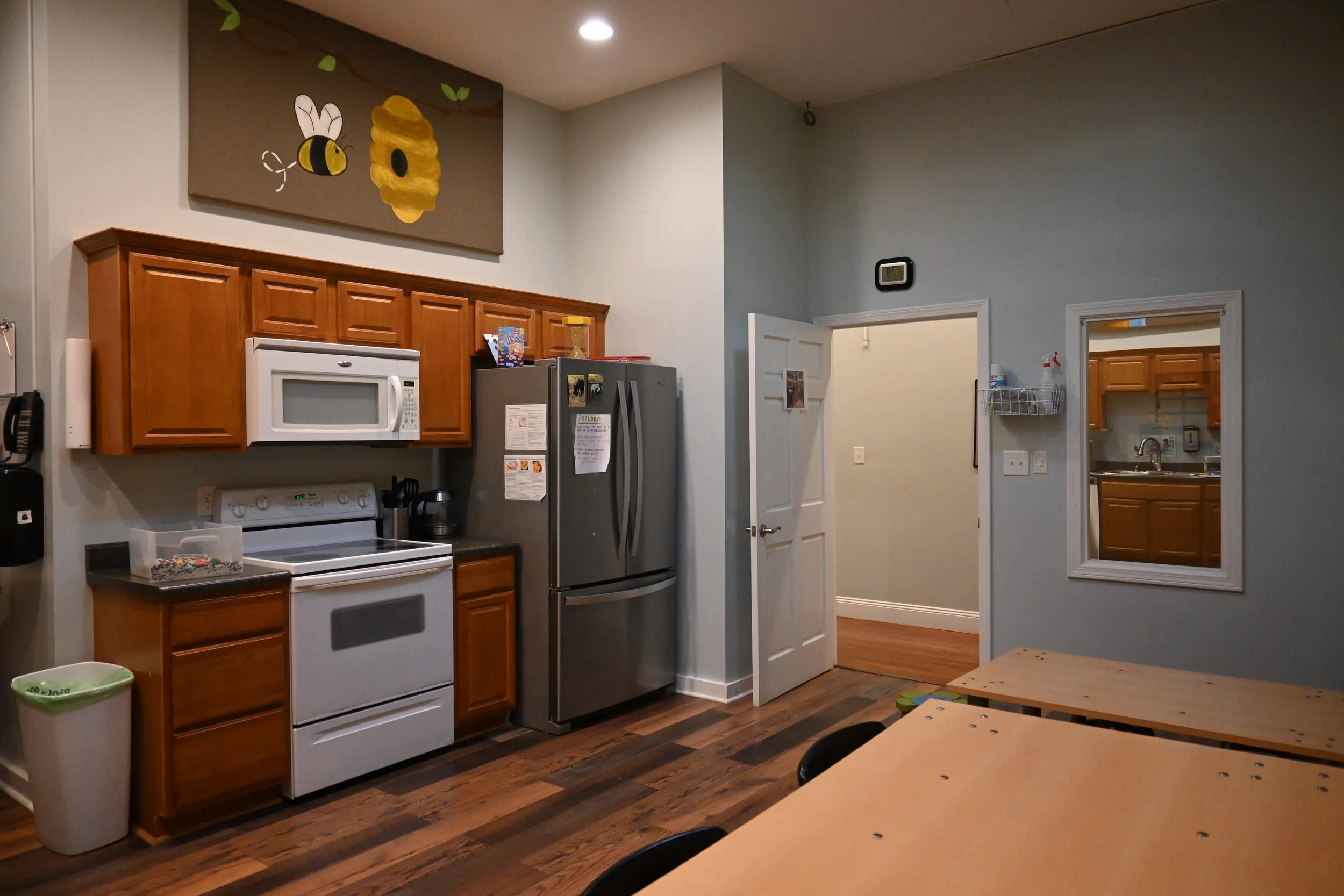A fully equipped kitchen allows children to practice life skills, such as meal preparation and cleanup.